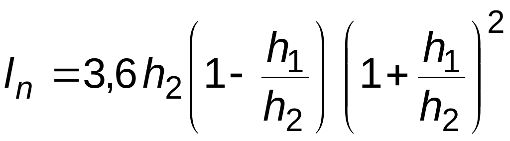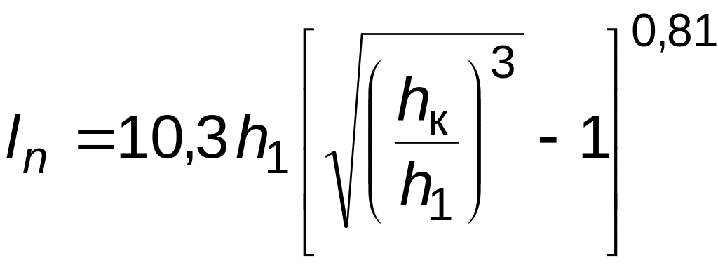 Длина гидравлического прыжка определяется экспериментально, и обычно ее выражают в долях от высоты гидравлического прыжка, сопряженных глубин и кинетичности потока.