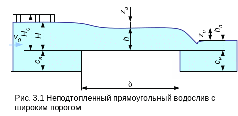 3.2.1. Неподтопленный прямоугольный водослив с широким порогом