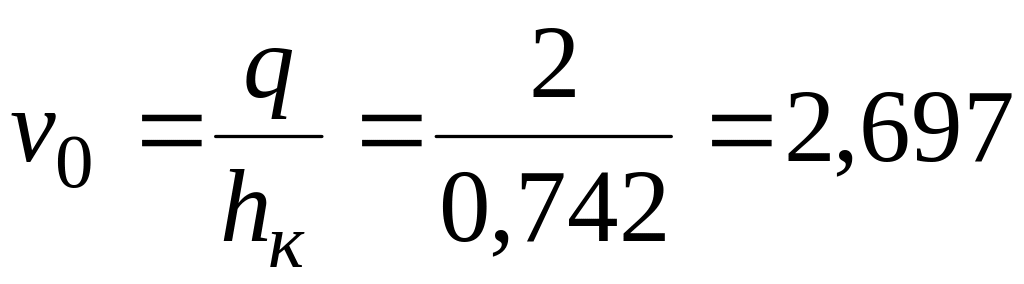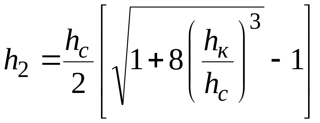 По формуле гидравлического прыжка (5.7) определяется вторая сопряженная глубина