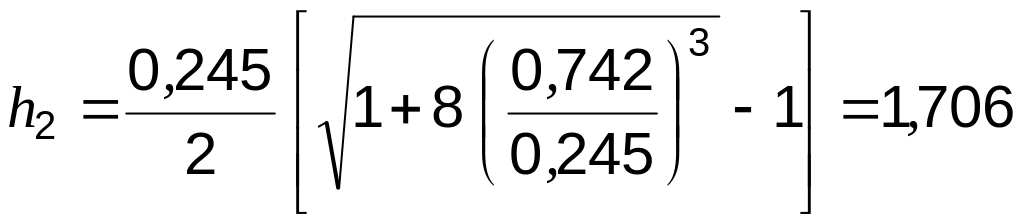 4) вычисляем вторую сопряженную глубину, используя основное уравнение прыжка: