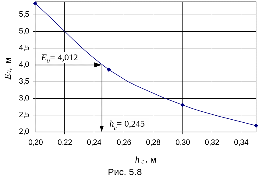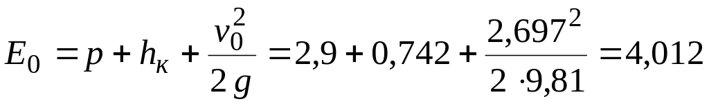 3) по найденному значению полного напора определяем величину сжатой глубины, решая (5.6);