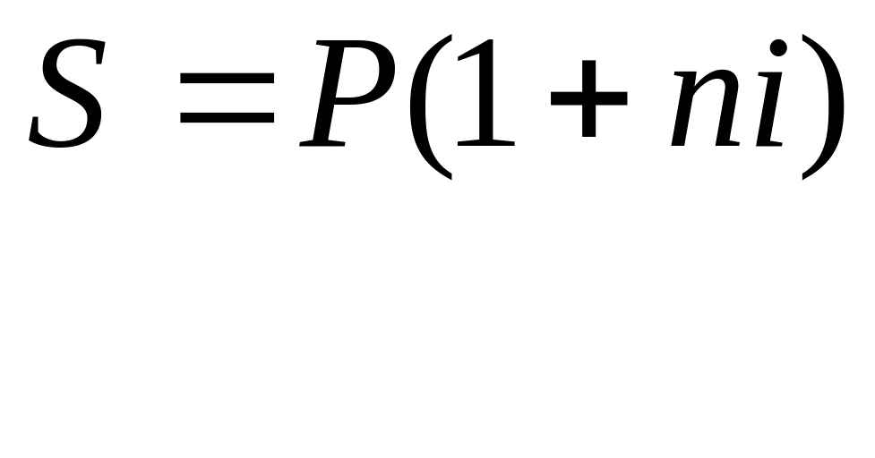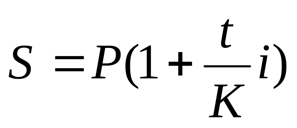i – простая процентная ставка (десятичная дробь, т.е – процентная ставка 20% годовых или 0,2 (20/100)