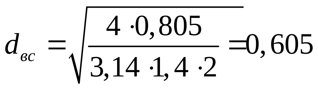 Округляем полученную величину диаметра до ближайшего стандартного размера, принимаем dвс=0,600 м.