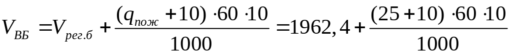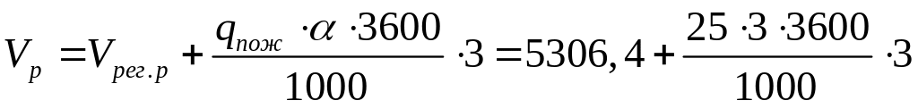 К полученным объемам резервуара и бака добавляется объем на пожаротушение.