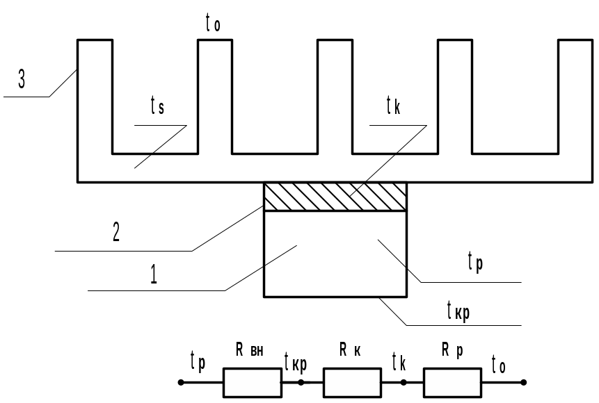 Рис. 7.3. Теплова модель приладу з радіатором.