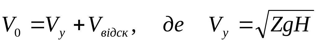 - швидкість пристрою в момент співударяння, Н – висота падіння,