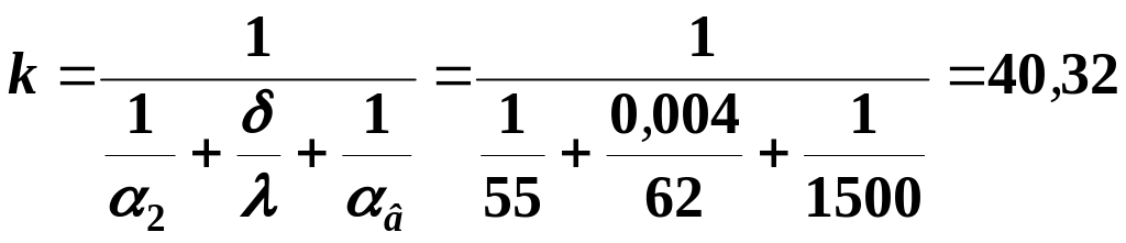 В випадку використання тонких циліндричних стінок значення коефіцієнта теплопередачі визначають по рівнянню для плоскої стінки, тобто: