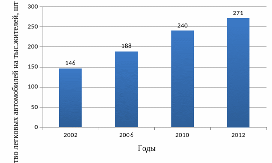 Рис.1.2 Динамика роста уровня автомобилизации в России