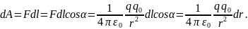 Если в электростатическом поле точечного заряда q из точки 1 в точку 2 вдоль произвольной траектории перемещается другой точечный заряд q0, то сила, приложенная к заряду, совершает работу. Работа силы на элементарном перемещении dl равна
