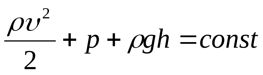 В случае горизонтальной струи (например, при течении жидкости в горизонтальной трубе) величина h постоянна и уравнение Бернулли принимает более простой вид: