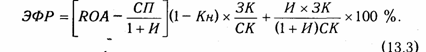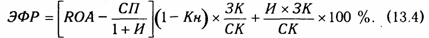 где ROA — экономическая рентабельность совокупного капитала до уплаты налогов (отношение суммы прибыли к среднегодовой сумме всего капитала); Кн — коэффициент налогообложения (отношение суммы налогов к сумме прибыли); СП — ставка ссудного процента, предусмотренного контрактом; ЗК — заемный капитал; СК - собственный капитал.