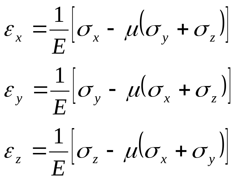 Визначення механічних напружень всередині тіла досліджуваного об'єкта за результатами вимірювань відносних деформацій на його поверхні розраховують на підставі основних співвідношень між механічними напруженнями та деформацією згідно з законом Гука, які загалом можуть бути записані як