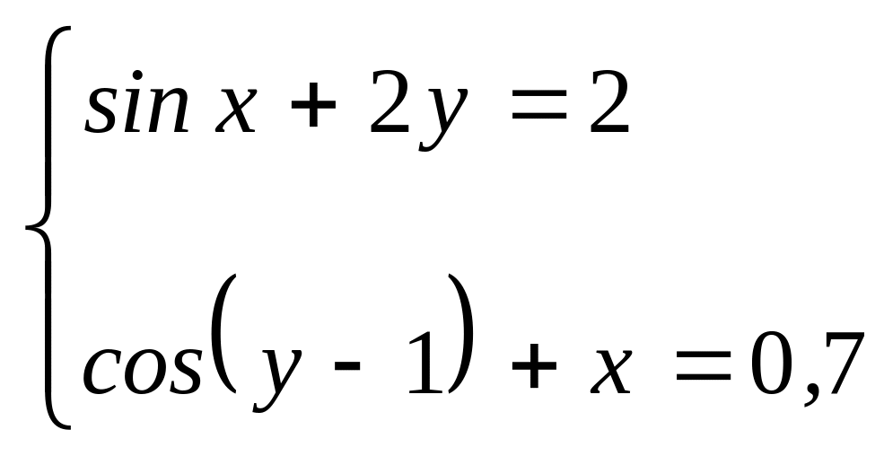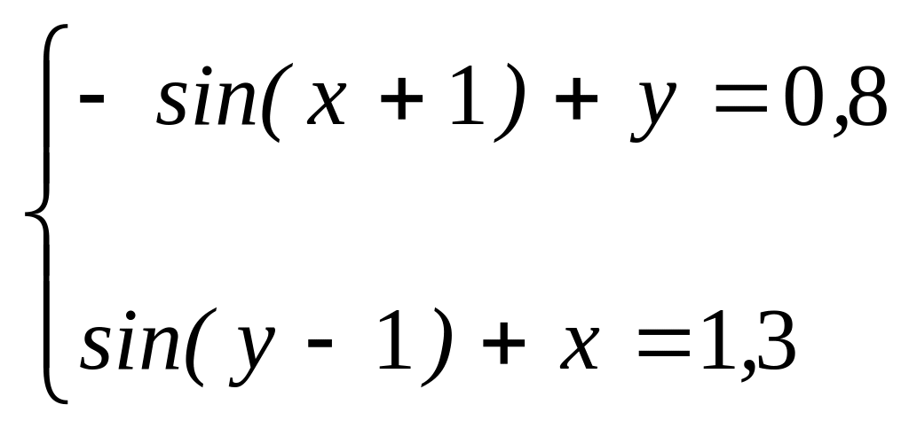 Преобразовать нелинейные уравнения системы к виду f1(x) = y и f2 (y)= x. Построить их графики и определить начальное приближение решения.