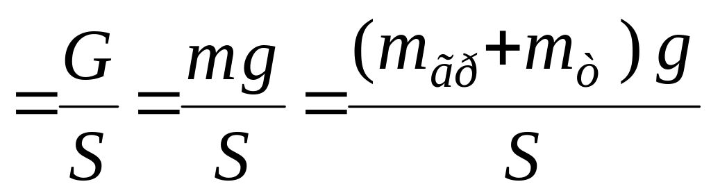 Действительное значение давления pД в системе определяется как отношение веса контрольных грузов и тарелки G к площади плунжера S.