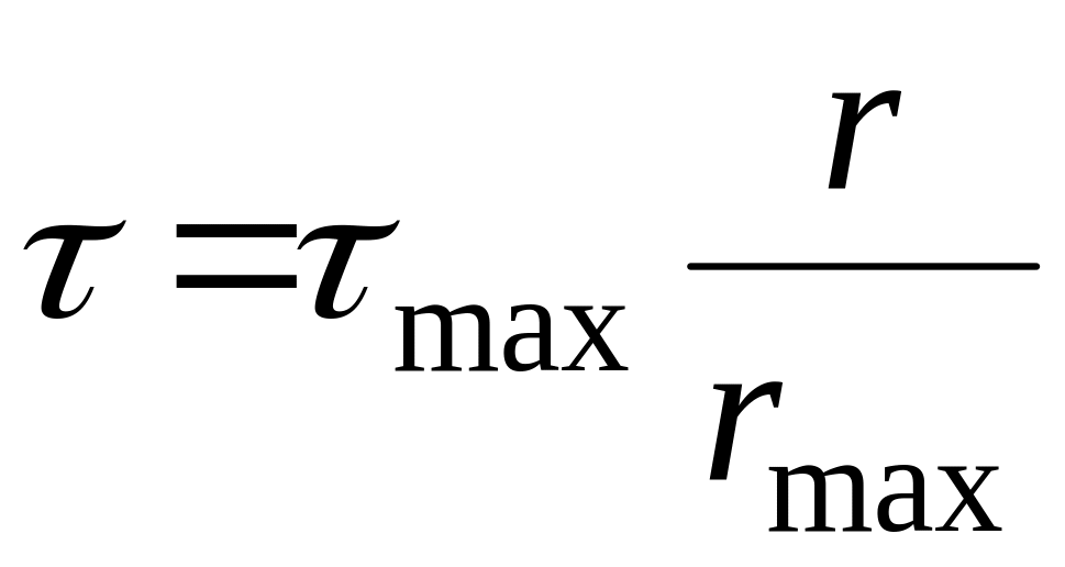 Касательные напряжения при ламинарном режиме распределяются по радиусу сечения трубы по линейному закону (см. рисунок 20,а) от максимального значения τmax на стенках до нуля на оси: