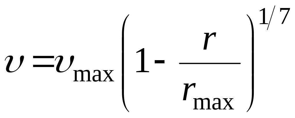 Приближенно осредненную местную скорость в любой точке поперечного сечения трубы при турбулентном режиме можно рассчитать по формуле [2]