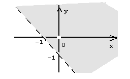 Выражение х2 + у2 = 0 определяет на плоскости точку О(0; 0). Таким образом, второе неравенство указывает, что эта точка должна быть исключена из области определения функции. Первому неравенству удовлетворяет множество точек плоскости, лежащих выше прямой у = –1 – х, без самой этой прямой (рис.3).