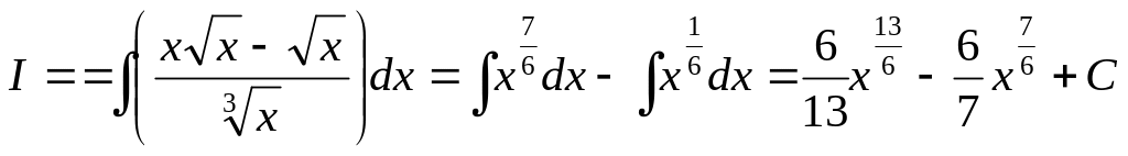 3.Подынтегральная функция (пр.3) может быть преобразована и сведена к разности двух функций, а значит к двум интегралам, интегрируемых по формуле 1 таблицы.