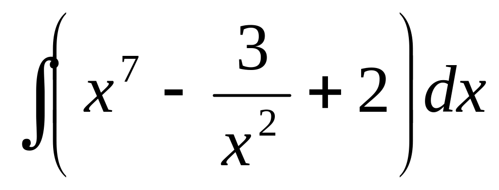 1.Разлагая интеграл 1 по свойству 2 на три интеграла и вынося постоянный множитель за знак интеграла (свойство 1), приведем интеграл к следующему виду:
