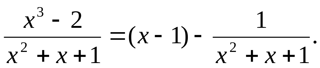 Неправильная дробь может быть представлена в виде целой части, интегрирование которой не представляет труда и остатка в виде правильной дроби. Это можно сделать делением «уголком»