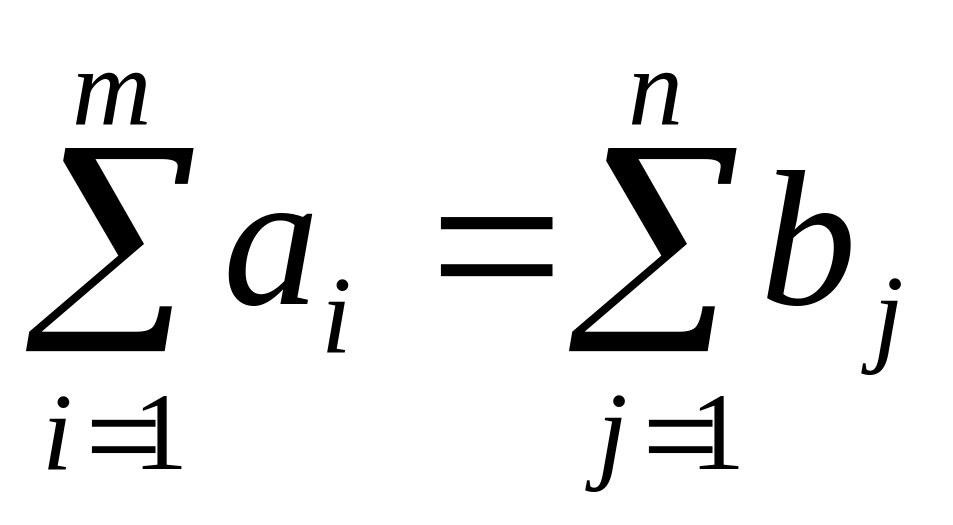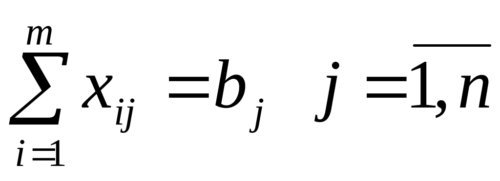 Чтобы спрос каждого из потребителей был удовлетворен, должны быть справедливы уравнения баланса для каждого столбца таблицы поставок, т.е.
