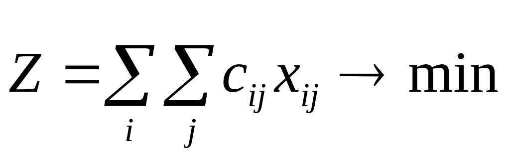 Рассмотрим экономико-математическую модель ТЗ, в которой критерием оптимальности взята минимальная стоимость перевозок всего груза.