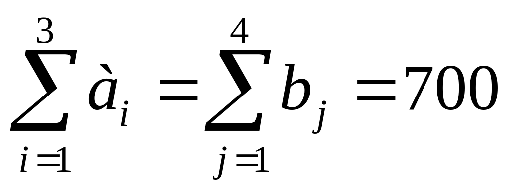 Чтобы запасы каждого поставщика были полностью реализованы, должны быть справедливы уравнения баланса для каждой строки таблицы поставок, т. е. выполняться равенства