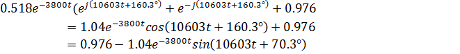 Корни характеристического уравнения получились комплексно-сопряженными, что говорит о том, что переходный процесс является колебательным, и свободная составляющая имеет общий вид: