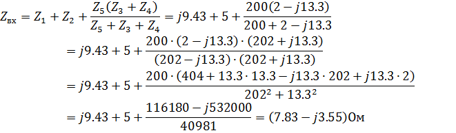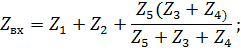 Находим входное сопротивление всей цепи по отношению к точкам, где приложено входное напряжение:
