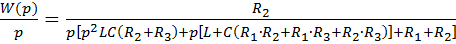 Действия операторным методом при нулевых начальных условиях в значительной мере подобны действиям при анализе символическим методом цепей синусоидального тока при замене в выражениях сопротивлений комбинации «j « на букву «р». Таким образом, мы найдем то, что называется передаточной функцией цепи: