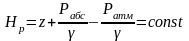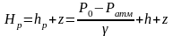 Для закрытого сосуда пьезометрический напор равен: