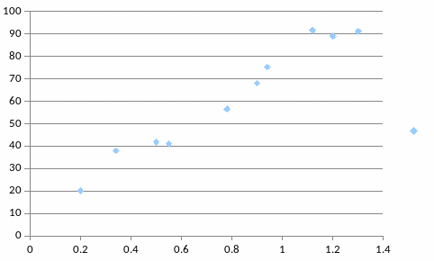 Анализ рисунка позволяет сделать предположение о наличии линейной зависимости годового товарооборота У от величина торговой площади Х. При этом связь имеет положительную тенденцию, т.е. с увеличением величины торговой площади Х увеличивается годовой товарооборот У .