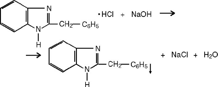 К 0,1 г порошка прибавляют 1–2 мл 96 % этанола, нейтрализованного по фенолфталеину, и титруют 0,01 М раствором едкого натра при взбалтывании до розового окрашивания Расчет по формуле