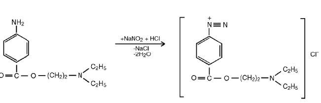 К 0,01 г порошка прибавляют 3–5 капель воды, 2 капли раствора натрия гидроксида и 1 каплю раствора кобальта нитрата – появляется сине-фиолетовое окрашивание или К 0,005 г порошка прибавляют 10-15 капель разведенной соляной кислоты, несколько кристаллов резорцина и нагревают до кипения – появится красное окрашивание. |