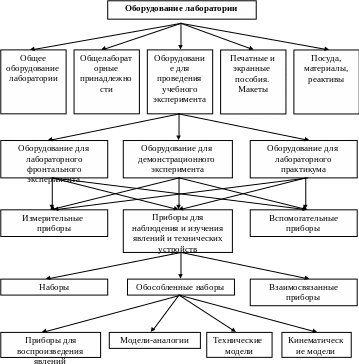 Учебные приборы, являясь материальной основой для проведения учебного эксперимента, используются непосредственно для сборки экспериментальных установок. Кроме того, учебное оборудование включает специальные устройства и приспособления, обеспечивающие необходимые условия для проведения опытов, реактивы и инструмент для поддержания работоспособности учебных приборов. Общие требования к учебным приборам определяются с учетом их назначения и особенностей как средств обучения и подробно исследованы нами в монографии [см. 259].