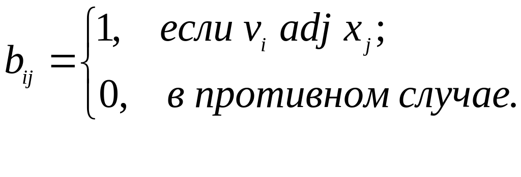 При рассмотрении ориентированного графа на пересечении строк и столбцов ставится число 1, если из вершины выходит соответствующее ее ребро. Если в вершину входит ребро, то ставят число (– 1). Если вершина не инцидентна ребру, то ставится число 0. Элементы матрицы инциденций неориентированного графа определяются следующим образом: