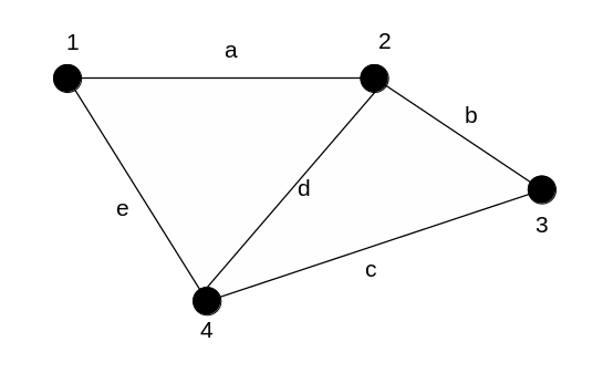Очевидно, что в каждом столбце матрицы инцидентности должно быть только два ненулевых числа, так как ребро инцидентно двум вершинам. Число ненулевых элементов каждой строки – степень соответствующей вершины.