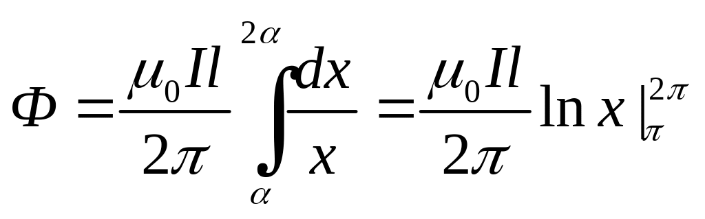 Для вычисления магнитного потока заметим, что так как В зависит от х и элементарный поток Ф будет также зависеть от х, то