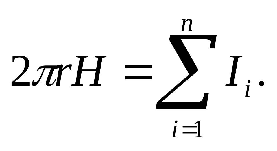 С другой стороны, в соответствии с законом полного тока циркуляция вектора напряженности магнитного поля равна сумме токов, охватываемых контуром, вдоль которого вычисляется циркуляция:
