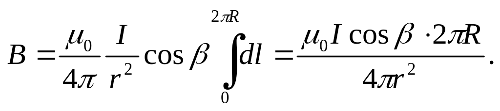 Подставив в формулу (2) значения 0, I, r1, r2 и cos, найдем В=286 мкТл.