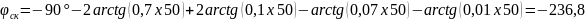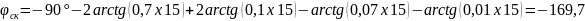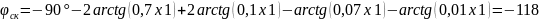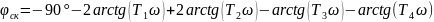 Φ(ω)= -90°-arctgT1ω-arctgT2ω-arctgT3ω