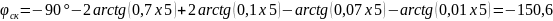 2) Φ(ω)= -90°-arctg0,05x5-arctg0.01x5-arctg0,1x5=-90°-14,03-2,86-26,5=-133,39