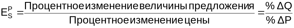 Ценовая эластичность предложения измеряет степень изменения величины предложения на изменение цены товара: