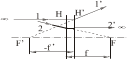 1. Фокусы F и F’ -это точки на оптической оси, сопряженные с бесконечно удаленными точками, расположенными на той же оптической оси.