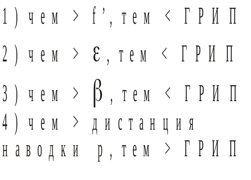 Глубина резко изображаемого пространства (ГРИП) и глубина резкости (ГР) - это расстояния вдоль оптической оси, в пределах которых допускаются независимые перемещения плоскости предметов или плоскости плёнки при условии сохранения удовлетворительного качества изображения.