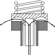 При подаче входного сигнала Uвх появляется сигнал ошибки U= Uвх- Uос, что ведёт к появлению тока управления в обмотках ЭМП Iу=kiU, что приводит к отклонению заслонки ЭМП h=kэмп Iу.