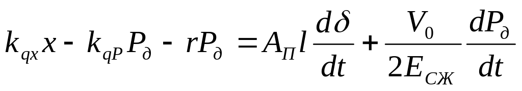 Расход в золотнике идёт на компенсацию расхода пропорционального скорости поршня Qд и расхода, идущего на компенсацию сжимаемости жидкости за вычетом расхода утечек Qут=rPд: