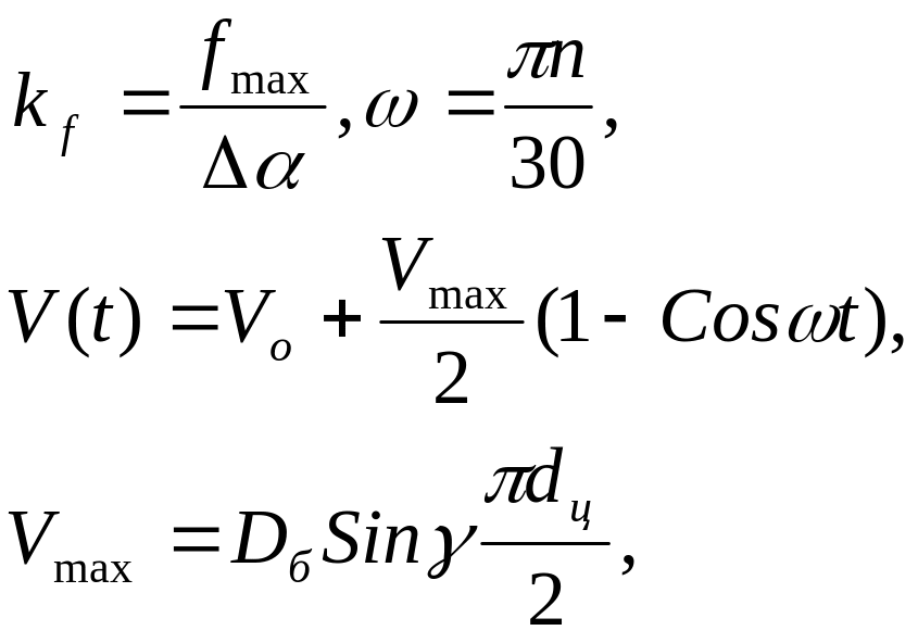 Уравнения равновесия сил, приложенных к поршню или равновесия моментов на выходном валу привода.