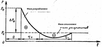 Час, протягом якого тиск в ударній хвилі зберігається вище атмосферного (τ+), називається фазою стиснення, а час, протягом якого тиск залишається нижче атмосферного (τ-) – фазою розрідження.