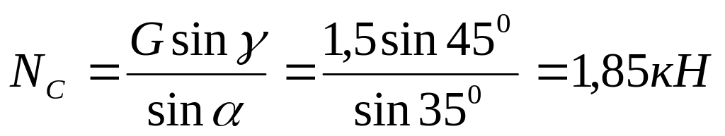 NA= Gcos γ + NCcos ά = 1,5cos450 + 1,85cos350 =1,06 + 1,51 = 2,57 кН